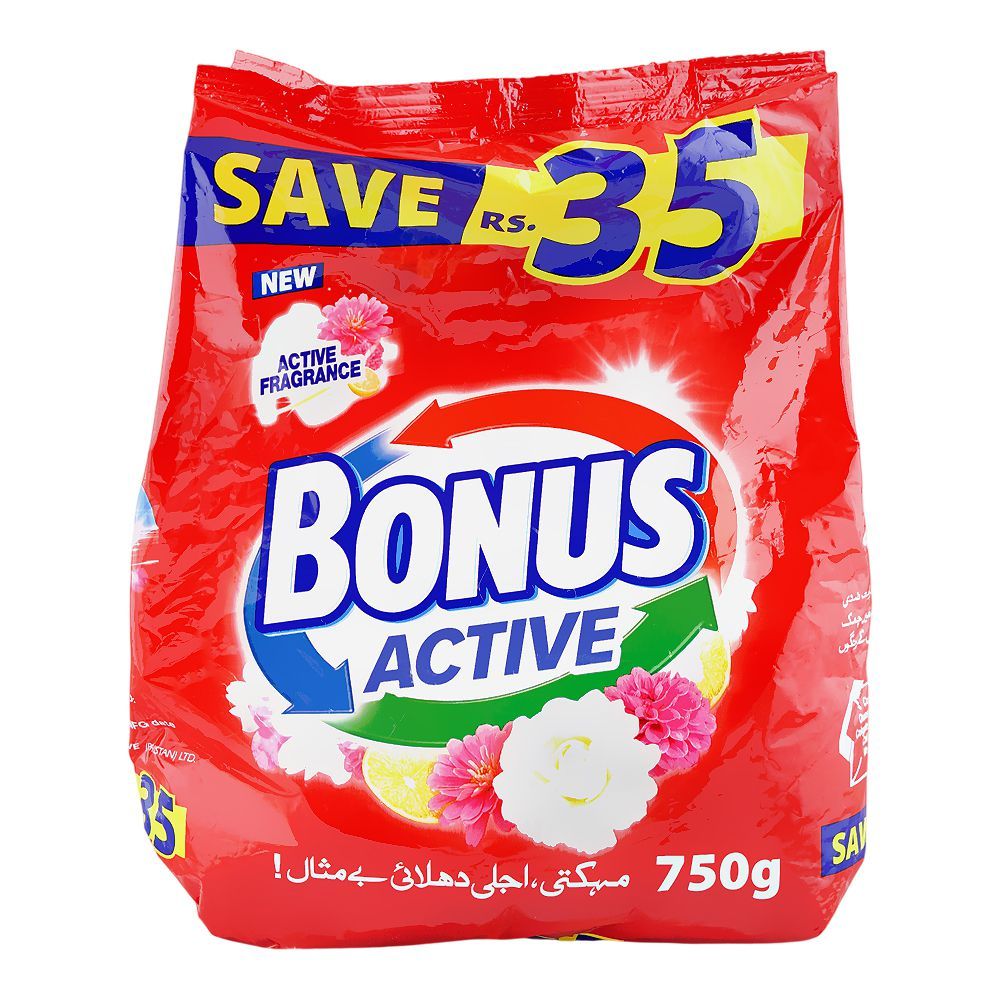 Bonus Active Detergent is specially formulated to provide powerful cleaning for everyday laundry. Its advanced formula tackles tough stains, dirt, and grease while keeping your clothes soft, bright, and fresh. Suitable for both hand wash and machine wash, Bonus Active ensures long-lasting cleanliness and a refreshing fragrance with every wash.